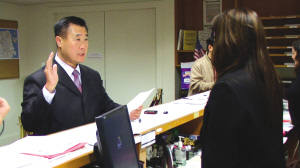 余胤良在一班好友和支持者的陪伴下,來到選務(wù)處填妥參選表格,并完成宣誓程序。他將在6月的初選中爭取民主黨內(nèi)提名,然后在11月的大選中與共和黨候選人一決高下。外界普遍認(rèn)為,如無意外,余胤良將順利連任。