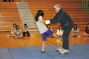 記者發(fā)現(xiàn),幾十名華裔女生大都比較害羞,吶喊聲音很小,動作也只是點(diǎn)到為止。相比之下,西裔女生則很認(rèn)真,而且敢于上場與“色狼”對練。華裔11年級女生陳青青表示,學(xué)了自衛(wèi)術(shù)之后,覺得很有用,起碼在遇到被色狼攻擊的時(shí)候不會那么害怕,知道該怎樣應(yīng)付,如何脫身。