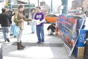 由多倫多華人團體聯(lián)合會副主席王清官、楊學武及黃政等,24日中午偕同一班義工,在中區(qū)華埠拉起“愛心多倫多,真情系玉樹”的橫額,為青海玉樹的7.1地震災民展開街頭募捐活動。在熙來攘往,人潮如鯽的士巴丹拿與登打士西街街角,一眾義工忙于呼吁路人踴躍捐助。當中,除了路過的華人樂于捐助外,不少主流人士,在了解募捐目的后,亦紛紛解囊相助,益見人間真愛,無分國界地域。