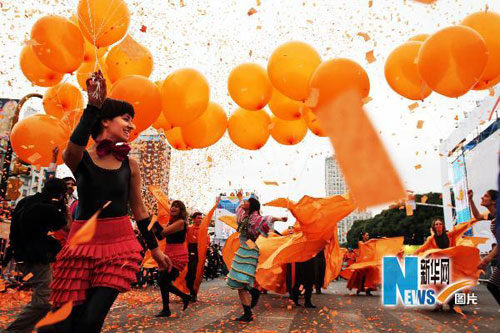 這次移民團(tuán)結(jié)大游行是阿根廷慶祝獨(dú)立200周年的慶典活動之一。阿根廷從21日起舉行一系列慶;顒,紀(jì)念這個南美國家獨(dú)立200周年。(昔歡 馮俊揚(yáng))