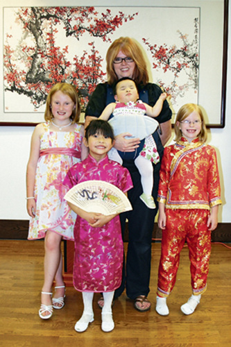 參加晚會的眾多家庭中,一位女士一直在胸前抱著一個中國女孩,無論觀看表演還是吃飯,從沒有把女孩放下過。她就是康肯(Lisa Konkin)。康肯夫婦已經(jīng)有6個孩子,年長的4個已經(jīng)長大成人,還有兩個女兒Caroline和Madeline。幾年前,康肯夫婦決定從中國收養(yǎng)孩子,經(jīng)過了近3年的漫長等待后,才抱起現(xiàn)年6歲的Hanna-Lin。