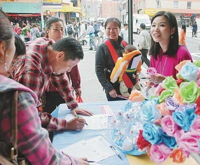 華策會小區(qū)拓展計劃十多名義工當(dāng)日下午在華埠愛烈治街、科西街和地威臣街的交匯處,免費派發(fā)由MISSTA禮品店贊助的玫瑰花,同時對閩籍新移民進行題為“單身的你,想‘脫光’了嗎?”的問卷調(diào)查,了解新移民的感情狀況。