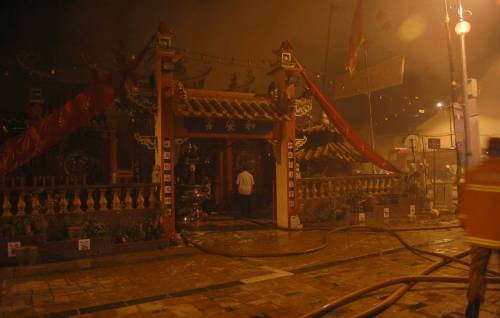 他指出,15名包括他在內(nèi)的消拯員用了25分鐘撲滅火勢,及時阻止火勢蔓延至鄰近民宅!拔覀兊诌_(dá)時,發(fā)現(xiàn)廟宇內(nèi)部中間起火,可是由于前門深鎖,我們唯有從廟宇的后門破門而入!彼f,由于廟宇內(nèi)有許多易燃物品,所以火勢蔓延得很快,內(nèi)部近60%遭燒毀。