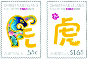中新網(wǎng)1月13日電 據(jù)澳洲《星島日報》報道,為紀念2010農(nóng)歷新年虎年的來臨,澳洲郵局特別推出一套由墨爾本設(shè)計師潘德妮設(shè)計的別致虎年郵票。