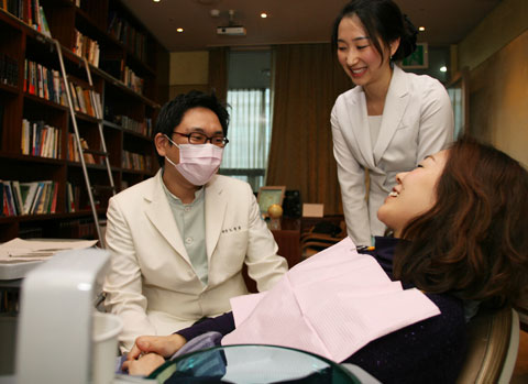 中新網1月7日電 據韓國《朝鮮日報》報道,5日,韓國首爾江南區(qū)清潭洞的牙科11層。“啊~決定治療了嗎?牙的哪個部分不合您的心意?”院長No Jeong-jun向身穿紫色針織T恤躺在診療臺上的日本人患者問道。站在旁邊的院方咨詢服務師當即做了翻譯;颊哒f“我的牙歪歪斜斜地太不整齊了”。她是3日為接受牙齒貼瓷整形治療以4天日程訪問韓國的日本主婦崎本。