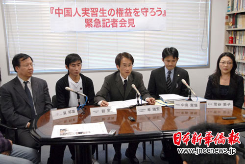 中新網(wǎng)1月7日電 在日十名中國實(shí)習(xí)生“討薪事件”引起了中日兩國諸多方面的關(guān)注。1月7日下午,十名在日中國實(shí)習(xí)生在《日本新華僑報》編輯部舉行了“維護(hù)中國實(shí)習(xí)生合法權(quán)益緊急記者會見”。共同社、時事通信社、《朝日新聞》、《每日新聞》、TBS電視臺等日本主流媒體都派記者前來采訪。