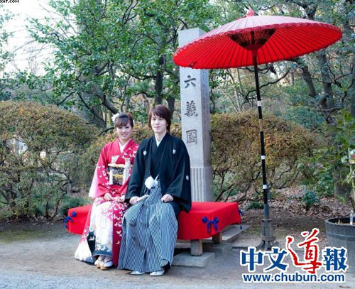2010年2月7日,記者在日本舊古河庭院見到了這一對(duì)幸福的夫妻。他們已經(jīng)穿上婚紗和禮服,準(zhǔn)備拍攝婚紗照了。