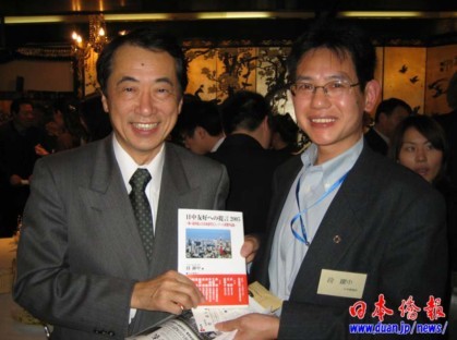 曾經(jīng)擔任全日本中國留學人員友好聯(lián)誼會會長多年的東北師范大學研究生院國際教育處處長的李光哲博士,接受《日本僑報》記者的國際電話采訪時,回憶了和菅直人交流的愉快時光,對菅直人當選日本新的首相感到由衷的高興。李博士曾經(jīng)多次參加菅直人主辦的中國留學生交流會,并代表中國留學生向菅直人贈送了《留日百年巡禮》紀念畫冊等,李光哲說,菅直人當選新的首相,無論對中日關系、對在日中國留學生來說,都是非常好的事情。
