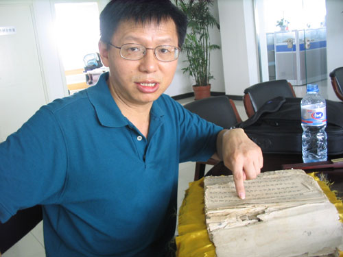 蹇浩向記者展示蹇氏族譜。