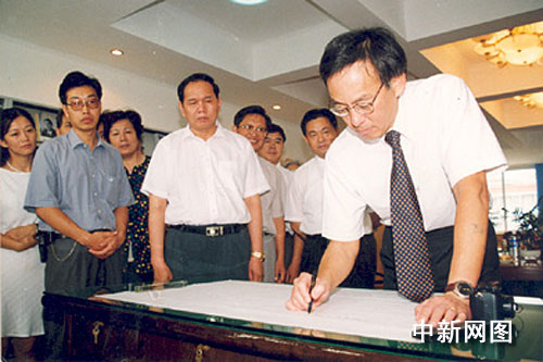 “說(shuō)起題字其中還有一段趣事,朱棣文教授是不會(huì)使用毛筆的,會(huì)寫(xiě)的漢字也只有他的名字,當(dāng)時(shí)我跑到附近的商店買(mǎi)來(lái)筆,他親筆寫(xiě)下這一副字,為了表達(dá)對(duì)故鄉(xiāng)的深情,他特別用中文簽上了自己的名字!碧珎}(cāng)市朱棣文小學(xué)副校長(zhǎng)陸玲笑著說(shuō)。