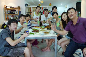 年三十下午4:00左右,趙建國來到位于裕廊東的朋友家中,其他幾個朋友也陸陸續(xù)續(xù)趕到。大家都帶了自己拿手菜的基本材料,開始在廚房里忙活起來。趙建國不用做菜,他主要負責包餃子,以及年夜飯后洗碗等后續(xù)工作。