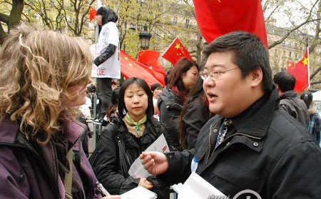 4月19日,法國華人支持北京奧運集會現場,李洹被安排第四個出場。他站在高高的麥克風后面,時而抑揚頓挫,時而真情流露。原計劃15分鐘的演講,最后持續(xù)了近20分鐘,其間在場留學生幾次為之熱情歡呼,一些法國人也頗為震驚。在演講中,李洹用法國人的語言和法國人能夠接受的邏輯充滿感情地表達看法,公開表示自己的情感受到了傷害。