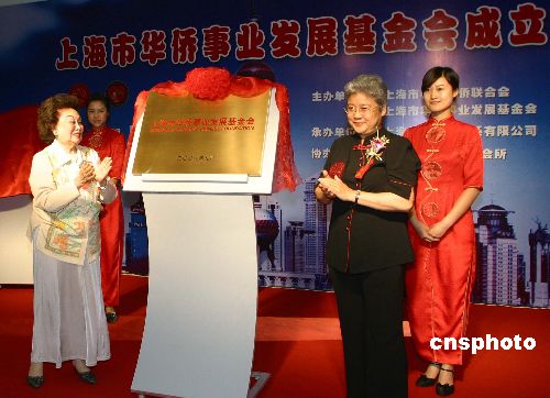九月十八日晚,“上海市華僑事業(yè)發(fā)展基金會(huì)”在上海舉行成立儀式,全國政協(xié)港澳臺(tái)僑委員會(huì)副主任唐聞生與美國國際合作委員會(huì)主席陳香梅女士(左)為該基金會(huì)揭牌。與此同時(shí),該基金會(huì)網(wǎng)站開通。中新社發(fā) 潘索菲 攝