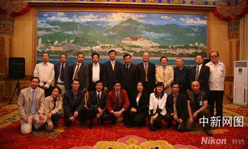 圖為張慶黎與訪藏海外華文媒體代表團(tuán)全體合影。賈長(zhǎng)飛 攝影