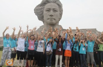 12日下午,54名來自世界各地的第九屆漢語橋世界大學生中文比賽的選手來到長沙著名的景點橘子洲,為第九屆漢語橋比賽拍攝宣傳片。