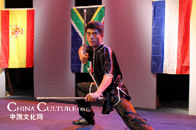 中國文化中心武術(shù)隊(duì)表演了南拳、長拳和三節(jié)棍等項(xiàng)目。他們在鏡頭前全神貫注、一絲不茍,最大程度地把自己所學(xué)完美地呈現(xiàn)給電視機(jī)前的觀眾。南拳套路短小精悍,結(jié)構(gòu)緊湊,手法多變,步法穩(wěn)健,并以聲助威,威猛迅疾,靈巧綿密,上肢及手型尤其富于變化;長拳套路姿勢舒展大方,動作靈活快速,剛?cè)岵?jì),快慢相間,動靜結(jié)合,節(jié)奏分明,并帶有跳躍、跌撲和滾翻動作,非常精彩;而三節(jié)棍則是伸縮自如,三節(jié)相互轉(zhuǎn)換,方法多變,遠(yuǎn)近兼顧,動作兇猛敏捷,氣勢逼人。棍法有劈、掃、掄、擊、戳、絞、格以及各種舞花,變幻無窮,令人驚嘆。這三個項(xiàng)目是文化中心的保留節(jié)目,深受武術(shù)學(xué)員們的喜愛。