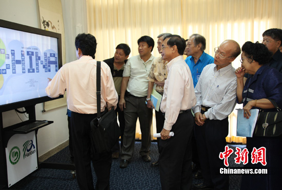 在孔子課堂“中國(guó)文化體驗(yàn)中心”,幾名高年級(jí)的學(xué)生正在引導(dǎo)50多位來(lái)自泰國(guó)北部清萊、清邁、南邦等8個(gè)府13所學(xué)校的理事和漢語(yǔ)教師,參觀孔子課堂利用現(xiàn)代多媒體科技手段打造而成的中國(guó)文化體驗(yàn)設(shè)備。“看,用手點(diǎn)這里就可以讓古箏發(fā)出聲音!币幻麑W(xué)生向記者展示著。用手指輕觸電子觸屏就能讓各色的“中華文化大餐”躍然于屏幕之上,中國(guó)傳統(tǒng)器樂(lè)展示、國(guó)粹京劇臉譜拍照和中國(guó)傳統(tǒng)剪紙?bào)w驗(yàn)更是令參觀者們個(gè)個(gè)豎起大拇指,連連叫好。