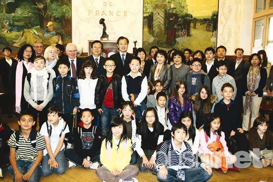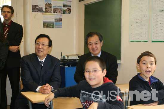 10月13日,該校校長安妮·弗雷斯蒂埃女士(Any FORESTIER)和巴黎學區(qū)長巴特里克·熱拉爾先生(Patrick GERARD)熱情歡迎中國教育部副部長郝平、中國駐法大使孔泉及其夫人等,赴德薩伊中學進行中文班教學觀摩,并在隨后接受了中方贈送的圖書和教具。