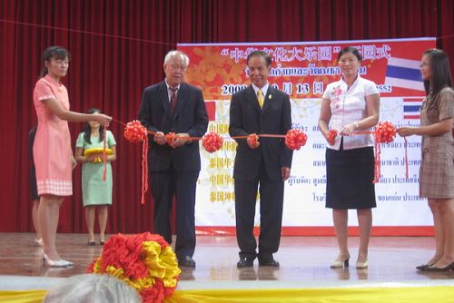 中新網(wǎng)10月14日電 據(jù)華僑大學(xué)華文學(xué)院報道,13日下午,由中國海外交流協(xié)會、泰國華文教師公會、華僑大學(xué)華文學(xué)院共同主辦,中國華語培訓(xùn)中心、泰國坤敬公立華僑學(xué)校承辦的“中華文化大樂園”坤敬分營開園式在坤敬公立華僑學(xué)校禮堂隆重舉行。