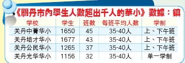 “目前關(guān)丹市區(qū)內(nèi)只有培才華小、中菁華小、公民華小及光華華小的學(xué)生人數(shù)超過(guò)1000人。不過(guò),由于學(xué);驹O(shè)施足以應(yīng)付需求,因此未出現(xiàn)所謂學(xué)生人數(shù)爆滿(mǎn)的情況。