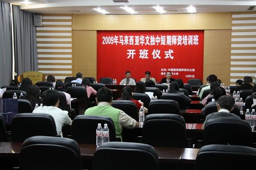 中新網(wǎng)12月7日電 據(jù)華僑大學(xué)網(wǎng)站消息,由中國(guó)國(guó)務(wù)院僑務(wù)辦公室主辦,華僑大學(xué)承辦的2009年馬來(lái)西亞華文獨(dú)中短期師資培訓(xùn)班12月7日上午在陳嘉庚紀(jì)念堂會(huì)議室舉行開(kāi)班儀式。華僑大學(xué)副校長(zhǎng)吳季懷出席開(kāi)班式。