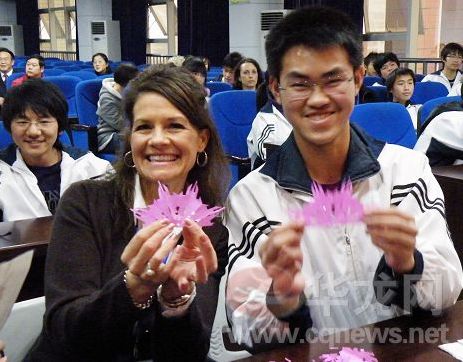 “中國(guó)最早的文字起源是什么?中國(guó)最早的文字為什么稱為甲骨文?”12月7日下午,2009“漢語(yǔ)橋——美國(guó)中小學(xué)校長(zhǎng)訪華之旅:邁出新步”代表團(tuán)到位于渝北區(qū)的重慶市暨華中學(xué)校參觀訪問(wèn)。9名美國(guó)中小學(xué)校長(zhǎng)在與師生共同上課的過(guò)程中,深刻感受到了漢語(yǔ)的無(wú)窮魅力。
