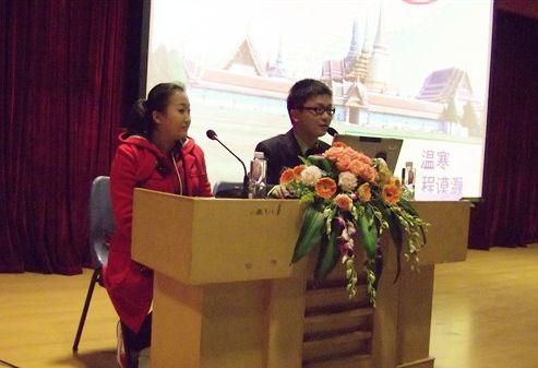 交流會上,兩位志愿者展示了自己在泰國工作生活的視頻,并講解了他們的志愿者經(jīng)歷和教學經(jīng)驗。詳實真切的報告帶給即將啟程前往泰國、菲律賓教學實習的對外漢語專業(yè)學生很大啟發(fā),同時也讓學弟學妹對志愿者工作有了新的認識和感悟。