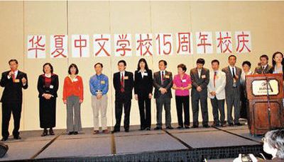 中新網(wǎng)5月4日電 據(jù)美國《世界日報》報道,為了慶祝建校15周年,美國華夏中文學(xué)校日前舉辦慶祝晚會,中國駐紐約總領(lǐng)館代總領(lǐng)事董曉軍、新州聯(lián)邦眾議員霍特等官員、社區(qū)名流、華夏部分往屆總校長、各分校校長、董事長和教師、學(xué)生代表200多人歡聚一堂,共同分享“華夏人”15年來的成果和喜悅。
