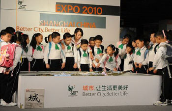 中新網(wǎng)5月17日電 據(jù)上海市僑辦消息,日前,上海市盧灣區(qū)華文教育基地——七色花小學(xué)的操場熱鬧非凡,來自美國、英國、澳大利亞、巴西等不同國家和地區(qū)的同學(xué)和家長在十個(gè)國家場館平面模型前擺開了陣勢,模擬世博參觀情景。