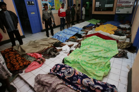 據(jù)美聯(lián)社報道,印尼海嘯災(zāi)區(qū)救助站的地上擺滿遇難者尸體,幸存者在遇難者尸體中尋找自己的親屬。