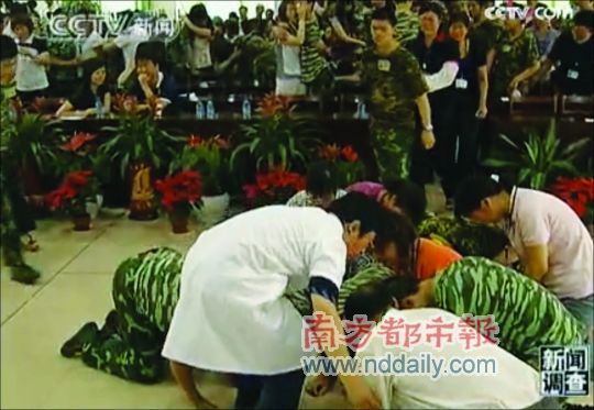 當(dāng)著《新聞?wù){(diào)查》節(jié)目組的面,楊永信在一次點(diǎn)評課后接受了十幾名接受治療的孩子及其家長的跪拜感謝,楊永信稱這樣的場景讓他很激動(dòng),覺得自己的付出值了。