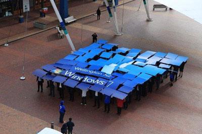 在新西蘭的奧克蘭和惠靈頓,微軟已經(jīng)啟動(dòng)了Windows 7發(fā)布儀式,許多工作人員聚集在廣場上,以拼圖形式組成了巨大的Windows 7標(biāo)識(shí)。