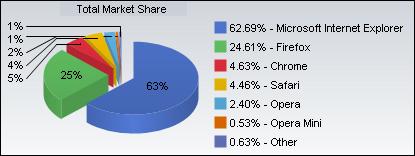 盡管如此,在過去的6個(gè)月中,IE市場份額幾乎每個(gè)月都要下降一個(gè)百分點(diǎn)。Net Applications預(yù)計(jì),到2010年年中,IE份額可能跌至50%。