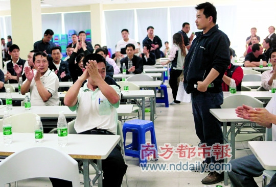 而富士康人力資源部專理楊先生則稱,富士康寶源工業(yè)園飯?zhí)帽緛硎亲灾鹘?jīng)營的,但不少工人向公司高層反映飯?zhí)玫娘埐瞬缓贸,花樣少,于是公司引進了兩家餐飲公司,所以原餐飲科要裁撤。有50余名廚工、廚師選擇轉(zhuǎn)崗,但仍有近百名廚師、廚工不愿調(diào)崗!肮静皇遣话l(fā)加班費”,楊先生說,因為雙方在加班理解上有差異,所以爭議未能解決。
