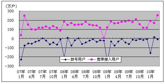 中新網(wǎng)4月26日電 據(jù)工信部今日公布的《2010年3月通信業(yè)運行狀況及主要指標完成情況》顯示,截止第一季度,基礎電信企業(yè)互聯(lián)網(wǎng)寬帶接入用戶凈增610.5萬戶,達到10933.1萬戶,而互聯(lián)網(wǎng)撥號用戶減少了152.0萬戶。基礎電信企業(yè)的互聯(lián)網(wǎng)用戶進一步趨向?qū)拵Щ?table border=0 cellspacing=0 cellpadding=0 align=left>