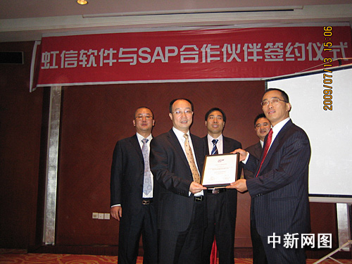 據(jù)悉,作為SAP在中國非常重要的信息化合作伙伴之一,虹信軟件將與SAP聯(lián)手協(xié)作為更多的客戶提供更加優(yōu)質(zhì)的服務(wù)。這一將跨國公司的領(lǐng)先技術(shù)、先進(jìn)管理理念與本土公司的資源、經(jīng)驗有機(jī)結(jié)合起來的強(qiáng)強(qiáng)合作,被業(yè)界看成是未來中國信息服務(wù)業(yè)發(fā)展的新方向。SAP中國區(qū)副總裁唐杰攜虹信軟件董事長莫文偉、總經(jīng)理任宗貴、副總經(jīng)理劉嘉陵共同出席了本次簽約授牌儀式。