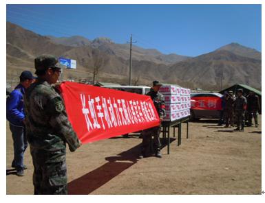 長虹手機首批災后重建物資抵達玉樹----捐贈給成都軍區(qū)防化部隊手中