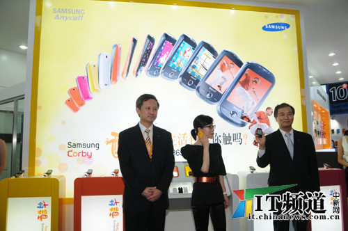中新網(wǎng)9月17日電 2009年中國(guó)國(guó)際信息通信展覽會(huì)于9月16日在北京新會(huì)展拉開了序幕。作為上升最快的全球第二大移動(dòng)通信終端制造商,三星電子在2009年中國(guó)國(guó)際信息通信展覽會(huì)上,全面展示了3G終端產(chǎn)品和技術(shù)的最新成果與趨勢(shì), 其中專為年輕消費(fèi)者量身打造的時(shí)尚觸控手機(jī)Corby — 酷畢S3650C(GSM)、F339(CDMA2000)也在本屆通信展上全球同步上市。