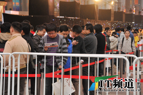 中新網(wǎng)10月30日電 中國(guó)聯(lián)通iPhone手機(jī)今日正式發(fā)布,首售儀式將于今日18時(shí)至次日凌晨在北京“世貿(mào)天階”舉行。記者在現(xiàn)場(chǎng)看到,雖然今晚天氣寒冷,但已經(jīng)有近300名消費(fèi)者在現(xiàn)場(chǎng)排隊(duì)等候購(gòu)買聯(lián)通iPhone手機(jī)。
