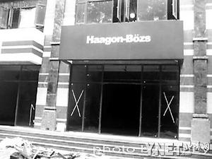 原來,這些商鋪的招牌乍一看是大牌,可再仔細(xì)看看,不對(duì)啊,怎么全部是山寨版?真是大跌眼鏡!從東往西第一家是大名鼎鼎的運(yùn)動(dòng)品牌李寧,“錯(cuò)了!這個(gè)叫李明LI-MING!钡诙沂切≠Y最愛的星巴克STARBUCKS,“又錯(cuò)了,這個(gè)叫BUCKSSTAR”。其他的大牌也如法炮制,必勝客成了“必勝糊”,哈根達(dá)斯成了“哈根波斯”,包括屈臣氏、seven-eleven等名牌都被惡搞了一把。最令人叫絕的是,麥當(dāng)勞的經(jīng)典m形標(biāo)志,被多加了一個(gè)彎,成了“3扇門”。記者看到,這些掛了招牌的商鋪并沒有一家正式開張。