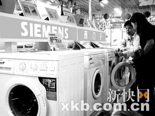 “600多元的雙缸洗衣機(jī)降到399元,1200元的全自動降到800多元,不少品牌在1000元左右‘打斗’!比涨坝浾咴谔K寧電器看到,小天鵝5公斤的半自動雙缸洗衣機(jī)只賣388元,而美菱6公斤半自動雙缸洗衣機(jī)價(jià)格也只要499元,而且還送100元的禮品。全自動洗衣機(jī)方面,5公斤左右的洗衣機(jī)無論是國產(chǎn)的美菱、海爾、小天鵝還是外資的三洋、LG、惠而浦的價(jià)格都降到了1000元左右。據(jù)營業(yè)員介紹,海爾、榮事達(dá)、小鴨、松下、TCL等國內(nèi)外知名品牌洗衣機(jī)全線降價(jià)20%左右,最高降幅將達(dá)到40%。