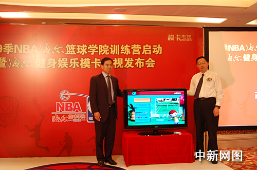 秉承NBA的體育及娛樂精神,在此次啟動(dòng)儀式上,作為NBA官方指定使用電視產(chǎn)品——海爾彩電推出了健身娛樂?娨暎l(fā)布了“云媒體”戰(zhàn)略。海爾集團(tuán)信息產(chǎn)品本部總工程師翟翌立博士介紹,海爾推出“健身娛樂?ā彪娨曋荚谧尭嗟娜俗悴怀鰬艟涂梢钥鞓方∩聿Ⅲw會(huì)NBA精神。同時(shí),隨著網(wǎng)絡(luò)時(shí)代的來臨,針對(duì)不同使用習(xí)慣用戶的需求,海爾彩電推出了“搜狐在線網(wǎng)絡(luò)模卡”和“迅雷下載網(wǎng)絡(luò)?ā,使得人們可以在家通過電視一鍵上網(wǎng)看高清大片,還將聯(lián)合更多的網(wǎng)絡(luò)內(nèi)容提供商,讓用戶無需擔(dān)心個(gè)人儲(chǔ)存設(shè)備空間的限制,可以隨時(shí)、無限量地自由選擇自己所需要的網(wǎng)絡(luò)內(nèi)容資源。