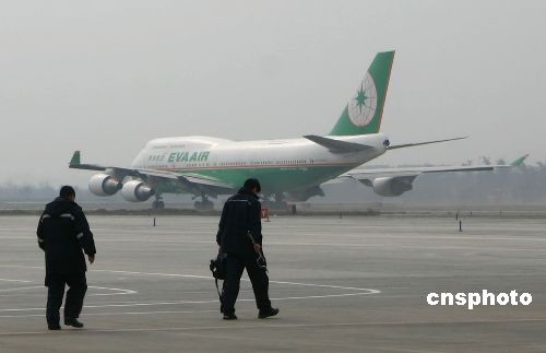 12月23日14時15分,運載贈臺大熊貓“團團”“圓圓”和17棵珙桐樹苗的臺灣長榮航空公司專機,在成都雙流國際機場跑道開始滑行,準(zhǔn)備起飛。中新社發(fā) 霍潺 攝