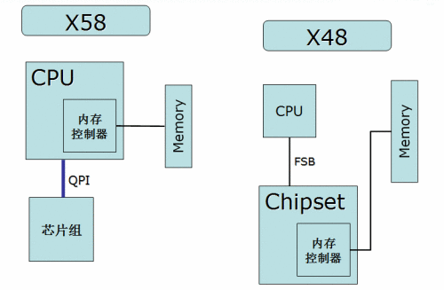 以上是Intel X58和Intel X48芯片組之間的規(guī)格對(duì)比列表。由以上列表我們可以看到,Intel X58芯片組相對(duì)X48芯片組來(lái)說(shuō),有許多方面的改進(jìn),北橋方面:Intel X58芯片組支持最新的LGA1366 Core i7系列處理器,而Intel X48芯片組支持上一代的LGA775 Core 2系列處理器;此外由于Intel Core i7系列處理器采用了新的QPI(Quick Path Interconnect)總線設(shè)計(jì),QPI的每一個(gè)鏈接均為全雙工,提供6.4GT/s的帶寬,而每一個(gè)2-byte寬度的鏈接每個(gè)方向可以得到12.8GB的帶寬,從而使得一個(gè)單一的QPI鏈接就能夠提供25.6GB/s的帶寬,是LGA775平臺(tái)架構(gòu)的2倍。