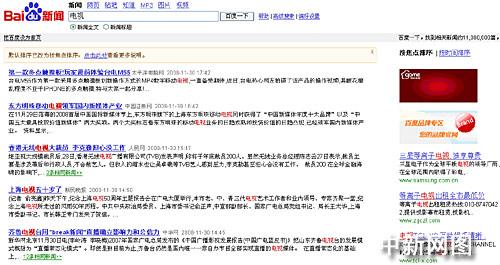 而百度則將通過聚合各家新聞機構(gòu)的內(nèi)容獲得的流量轉(zhuǎn)化成了自己的廣告價值。在百度新聞搜索中搜索“電視”后,除了各家新聞網(wǎng)站關(guān)于電視的相關(guān)新聞外,還會在頁面右側(cè)看到多家電視廠商的廣告(下圖)。而通過這些廣告獲得的收入,百度顯然不會與提供內(nèi)容的新聞單位分成。