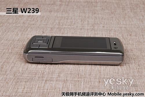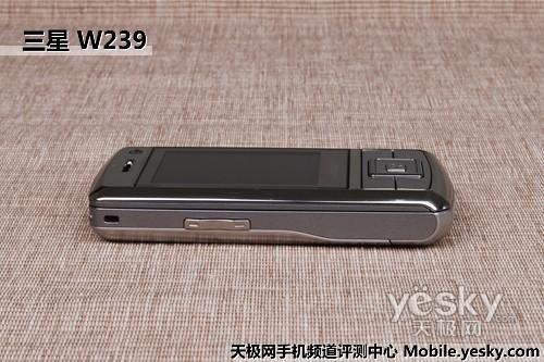 三星W239在機身左側(cè)設(shè)計了音量控制鍵,按鍵凸起明顯,便于在不方便拿起手機的情況下,控制音量。