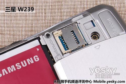 機身右側(cè)下方是該機耳機、數(shù)據(jù)線、充電器三合一接口,采用三星自主標準。而microSD卡插槽則需要打開電池后蓋才能看到,同樣支持熱插拔。