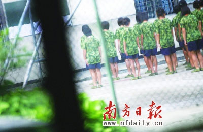 7月13日17時(shí),12歲小林跟著母親陳女士從中山坦洲趕到位于南沙浩今職中內(nèi)的“起航拯救訓(xùn)練營”。浩今職中緊鄰新建的黃閣大道,新鋪的柏油路兩旁綠樹成蔭,學(xué)校周邊有成排的商店、文具店和飯店。學(xué)校的景象卻讓小林心里發(fā)怵:3層宿舍樓窗戶焊滿鐵欄桿,“像監(jiān)獄”,操場也被鐵絲網(wǎng)封鎖。