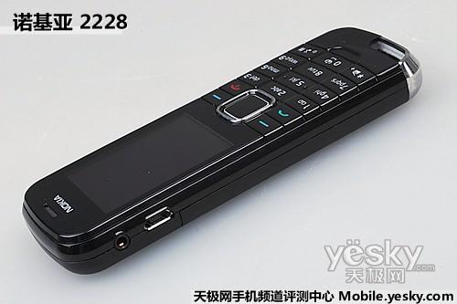 諾基亞2228機身左側(cè)集中了2.5mm耳機接口與B型miniUSB接口,融通性不錯,找到一根相搭配的數(shù)據(jù)不是難事。