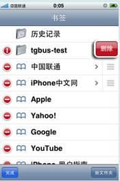 ⑵ 在書簽列表界面中,點擊屏幕左下角的“編輯”按鈕可刪除已經(jīng)保存的書簽,具體操作為:點擊紅色的“-”,使其變?yōu)椤皘”,直接點擊“刪除”按鈕即可刪除對應(yīng)的書簽